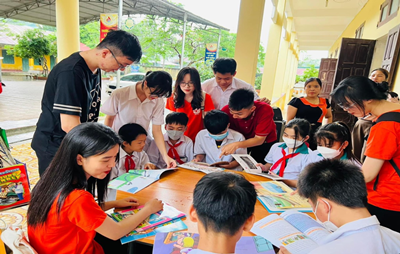 các hoạt động cộng đồng, hỗ trợ hơn 100 đầu sách, vở, giá sách, bảng từ, bàn đọc