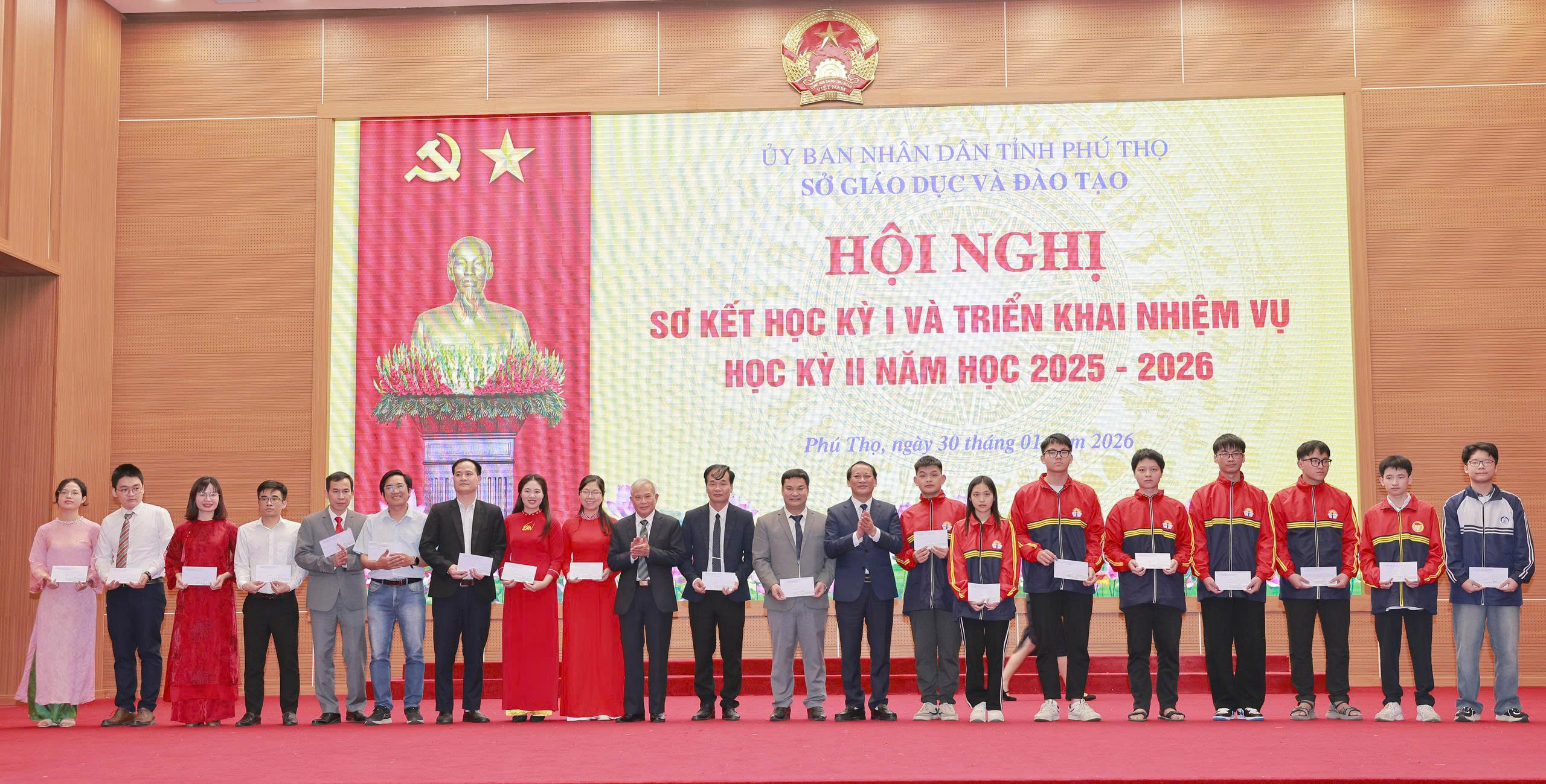 KHPT - Chiều 30/1, Sở Giáo dục và Đào tạo (GD&ĐT) tổ chức Hội nghị sơ kết học kỳ I, triển khai nhiệm vụ học kỳ II năm học 2025 – 2026. Dự và phát biểu chỉ đạo hội nghị có đồng chí Nguyễn Khắc Hiếu – Tỉnh ủy viên, Phó Chủ tịch UBND tỉnh. Tại chương trình, Quỹ Khuyến học – Khuyến tài tỉnh đã trao thưởng tổng trị giá 262 triệu đồng nhằm kịp thời động viên giáo viên và học sinh đạt thành tích xuất sắc trong kỳ thi chọn học sinh giỏi quốc gia.