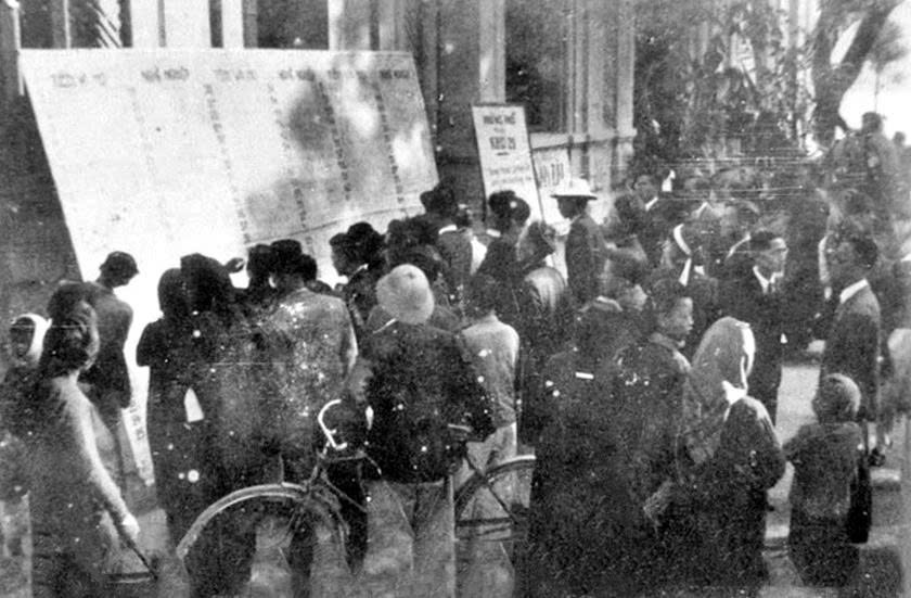 Cử tri Thủ đô Hà Nội xem danh sách, tiểu sử các đại biểu ra ứng cử năm 1946. Ảnh: Tư liệu TTXVN