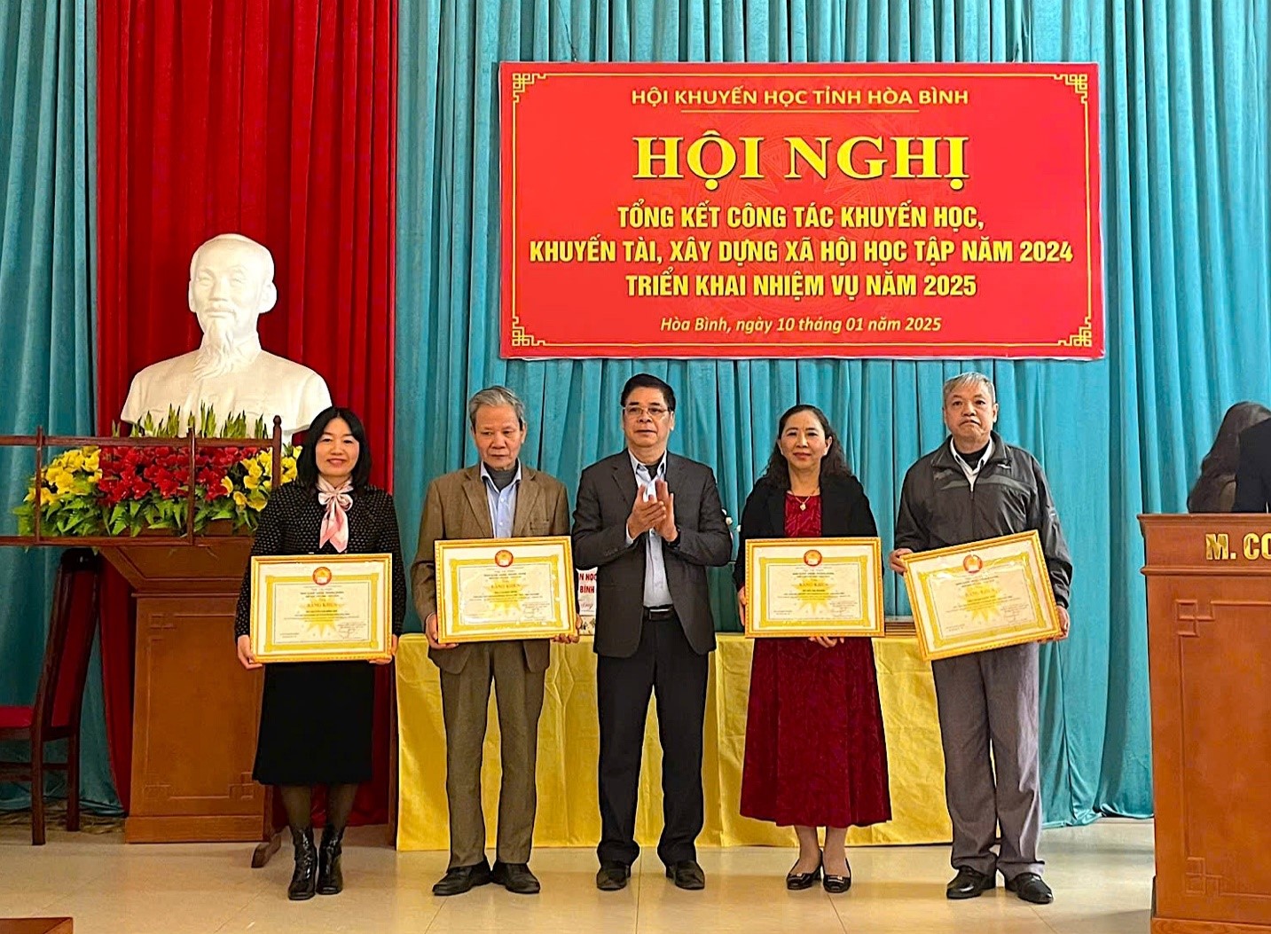 trong công tác khuyến học năm 2024. Hội khuyến học tỉnh tặng giấy khen cho 48