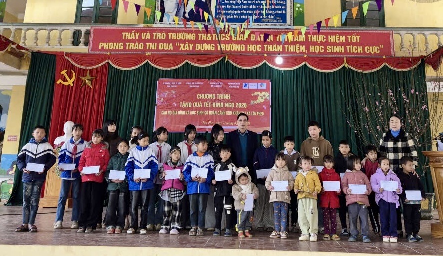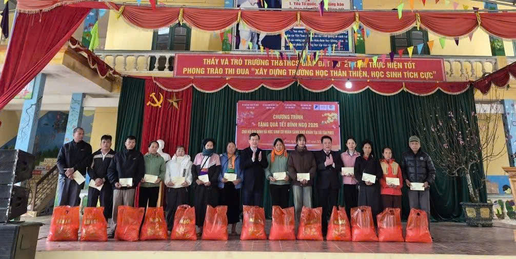 Nhân dịp Tết Nguyên đán Bính Ngọ 2026, ngày 2/2, đồng chí Trịnh Thế Truyền - Tỉnh ủy viên, Giám đốc Sở Giáo dục và Đào tạo cùng Hội khuyến học tỉnh và các doanh nghiệp đã trao 265 suất quà Tết cho hộ nghèo và học sinh có hoàn cảnh khó khăn tại 2 xã Minh Đài và Tân Pheo.