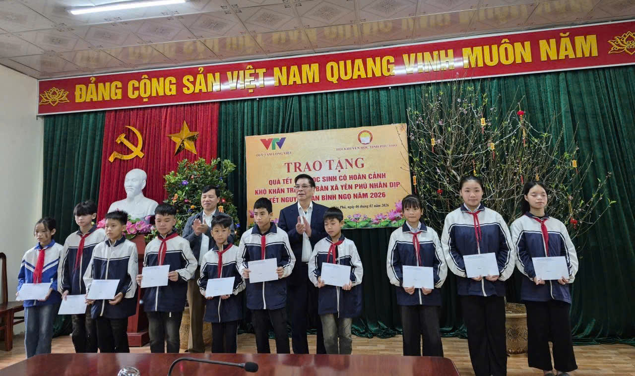 Tại chương trình, Đồng chí Đinh Văn Ổn, Phó Chủ tịch Hội khuyến học Tỉnh Phú Thọ và các đồng chí lãnh đạo xã đã trao 70 suất quà cho 70 học sinh có hoàn cảnh khó khăn, mỗi suất quà trị giá 500.000đ đã được trao tận tay các em học sinh, góp phần động viên tinh thần, giúp các em có thêm điều kiện đón Tết vui tươi, ấm áp và đầy đủ hơn. Những phần quà tuy giá trị không lớn nhưng chứa đựng tình cảm, sự sẻ chia và trách nhiệm của cộng đồng đối với các em có hoàn cảnh khó khăn. Đây là hoạt động ý nghĩa nhân văn sâu sắc của quỹ tấm lòng việt VTV, Đài truyền hình Việt Nam.