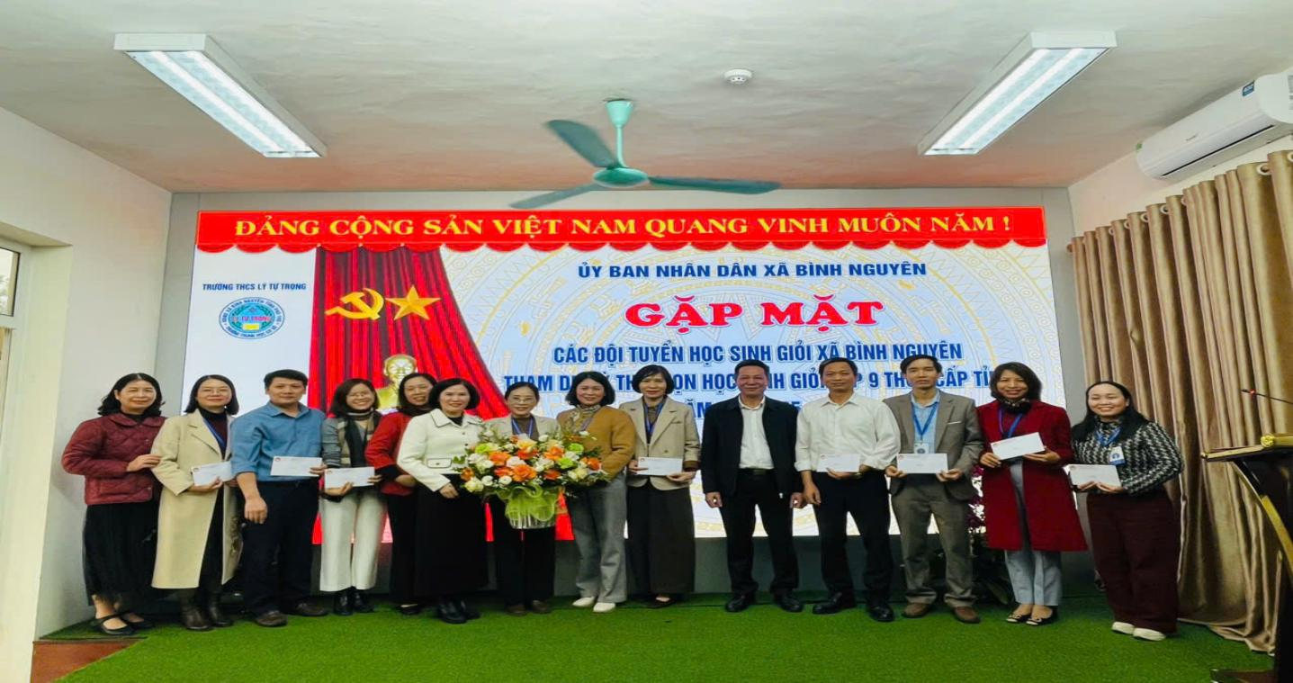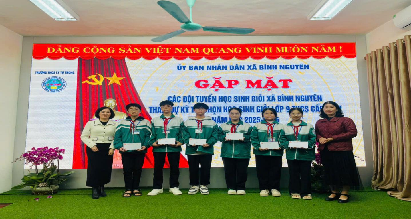 Chiều ngày 29 tháng 01 năm 2026 tại trường THCS Lý Tự Trọng, UBND xã Bình Nguyên tổ chức gặp mặt các đội tuyển học sinh giỏi xã Bình Nguyên tham dự Kỳ thi chọn học sinh giỏi lớp 9 THCS cấp tỉnh năm học 2025-2026. Tại buổi gặp mặt đầy ý nghĩa này, Hội Khuyến học xã Bình Nguyên đã trao quà động viên 54 học sinh và 11 giáo viên bồi dưỡng đội tuyển học sinh giỏi lớp 9 của Trường THCS Lý Tự Trọng, chuẩn bị bước vào Kỳ thi chọn học sinh giỏi cấp tỉnh năm học 2025-2026. Đây là hoạt động thiết thực, thể hiện sự quan tâm sâu sát của địa phương đối với công tác bồi dưỡng nhân tài.