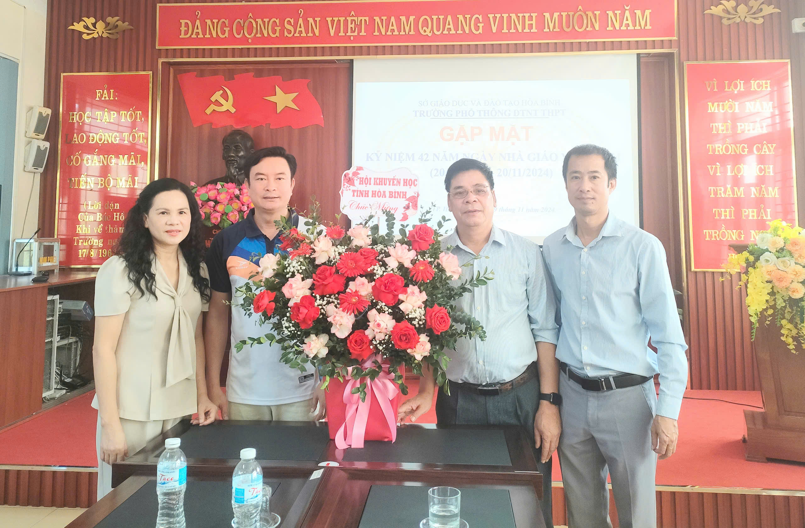Ảnh: HKH tỉnh tặng hoa và chúc mừng trường Phổ thông Dân tộc nội trú-THPT tỉnh