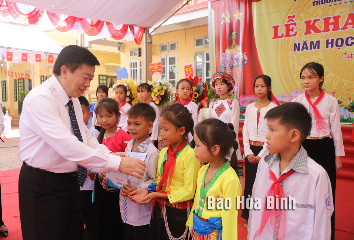 Phó Thủ tướng Chính phủ Lê Thành Long dự lễ khai giảng tại Trường TH&THCS Tuân Đạo, huyện Lạc Sơn