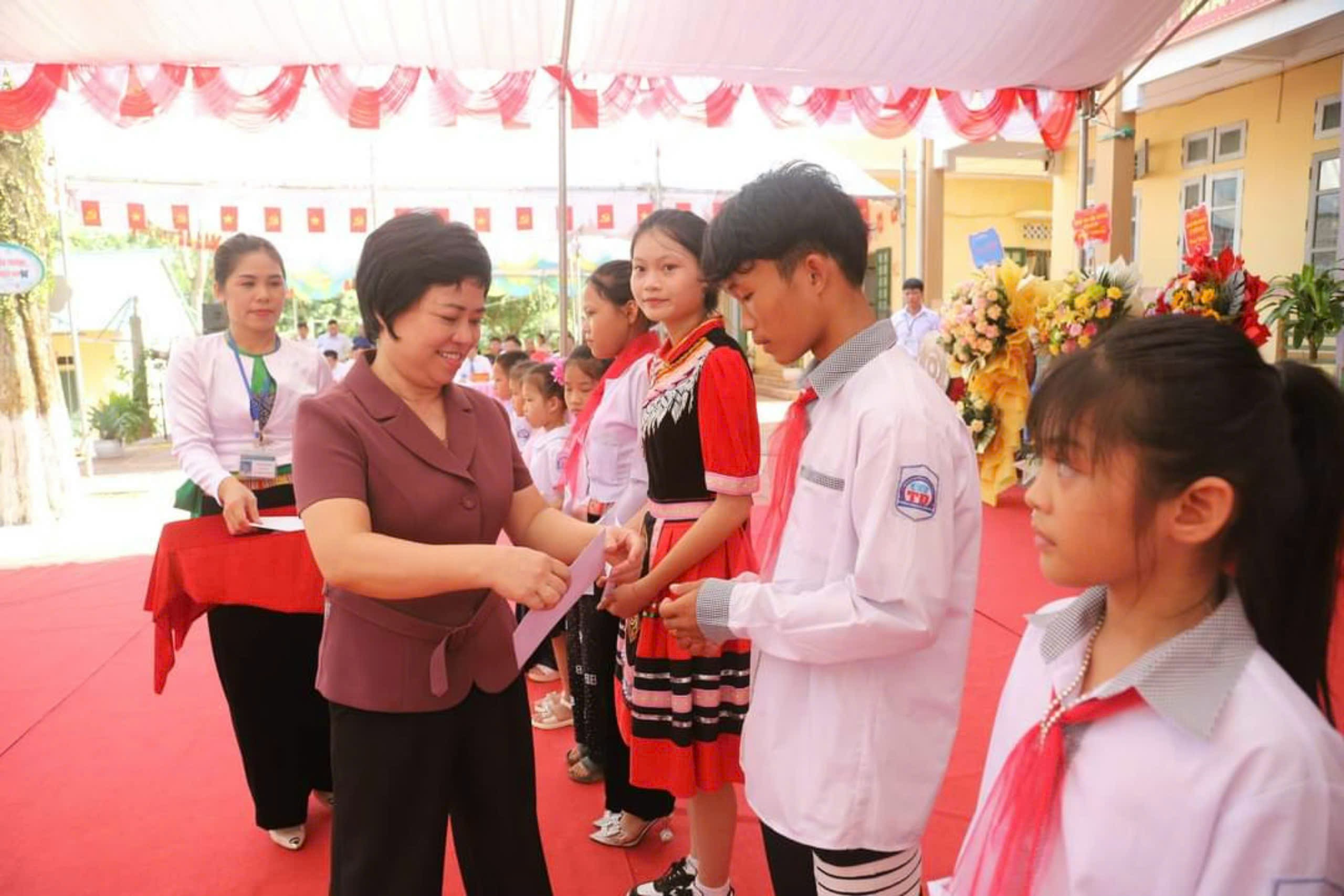 Đồng chí Nguyễn Thị Oanh, Chủ tịch Hội Khuyến học tỉnh Hòa Bình tặng học bổng
