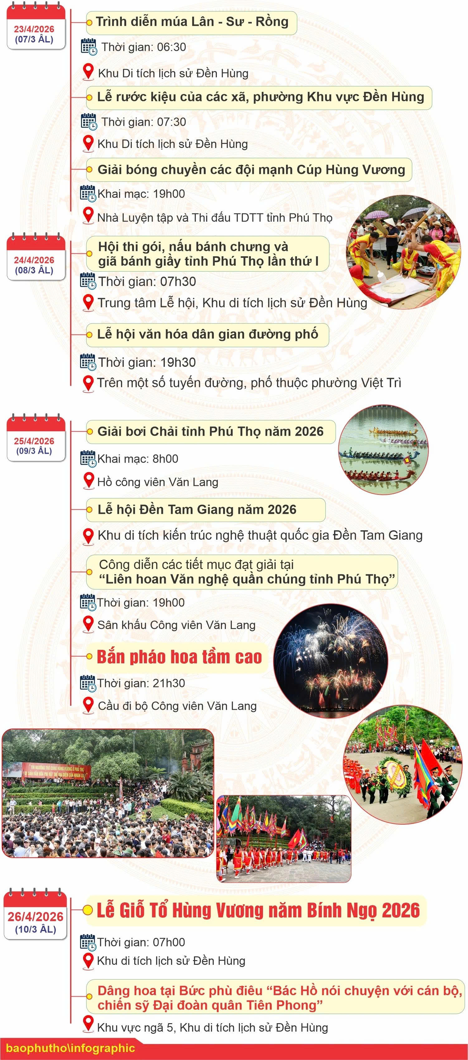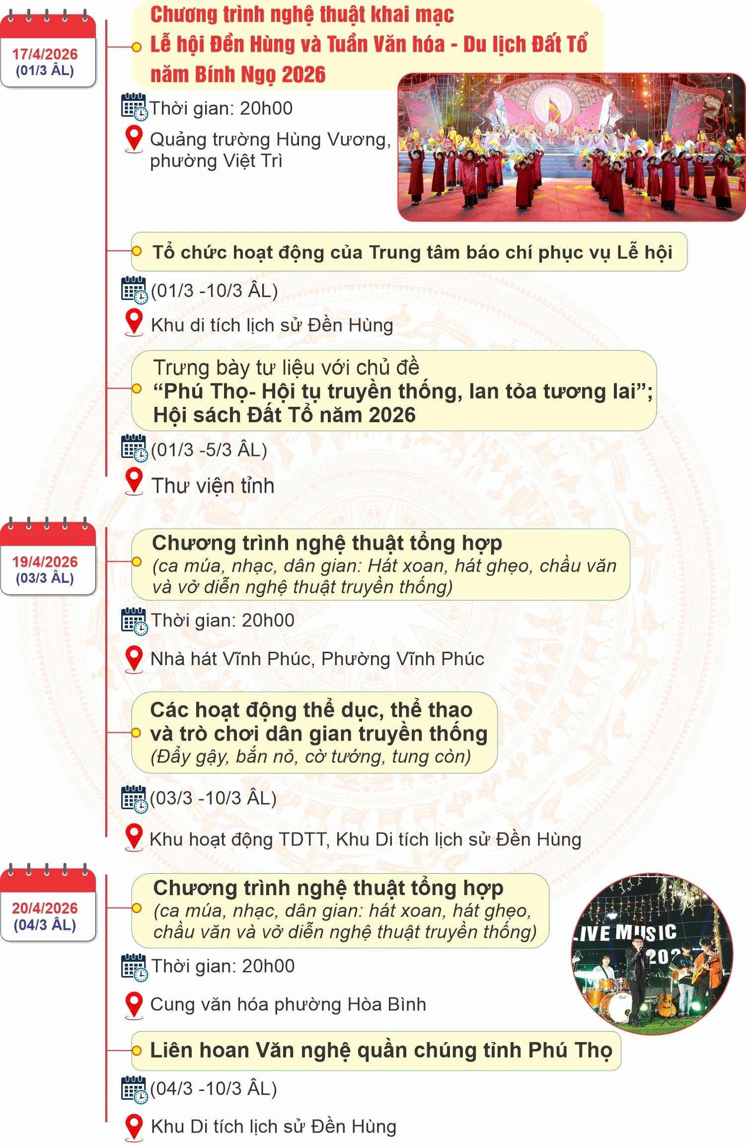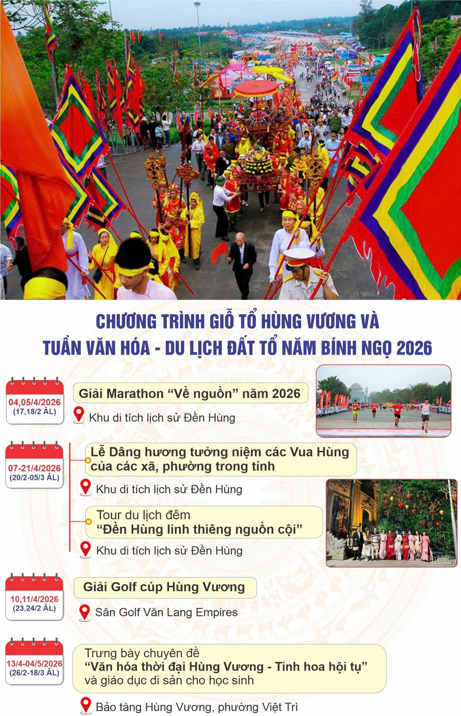 [Infographic] Chương trình Giỗ Tổ Hùng Vương - Lễ hội Đền Hùng và Tuần Văn hóa - Du lịch Đất Tổ năm Bính Ngọ 2026